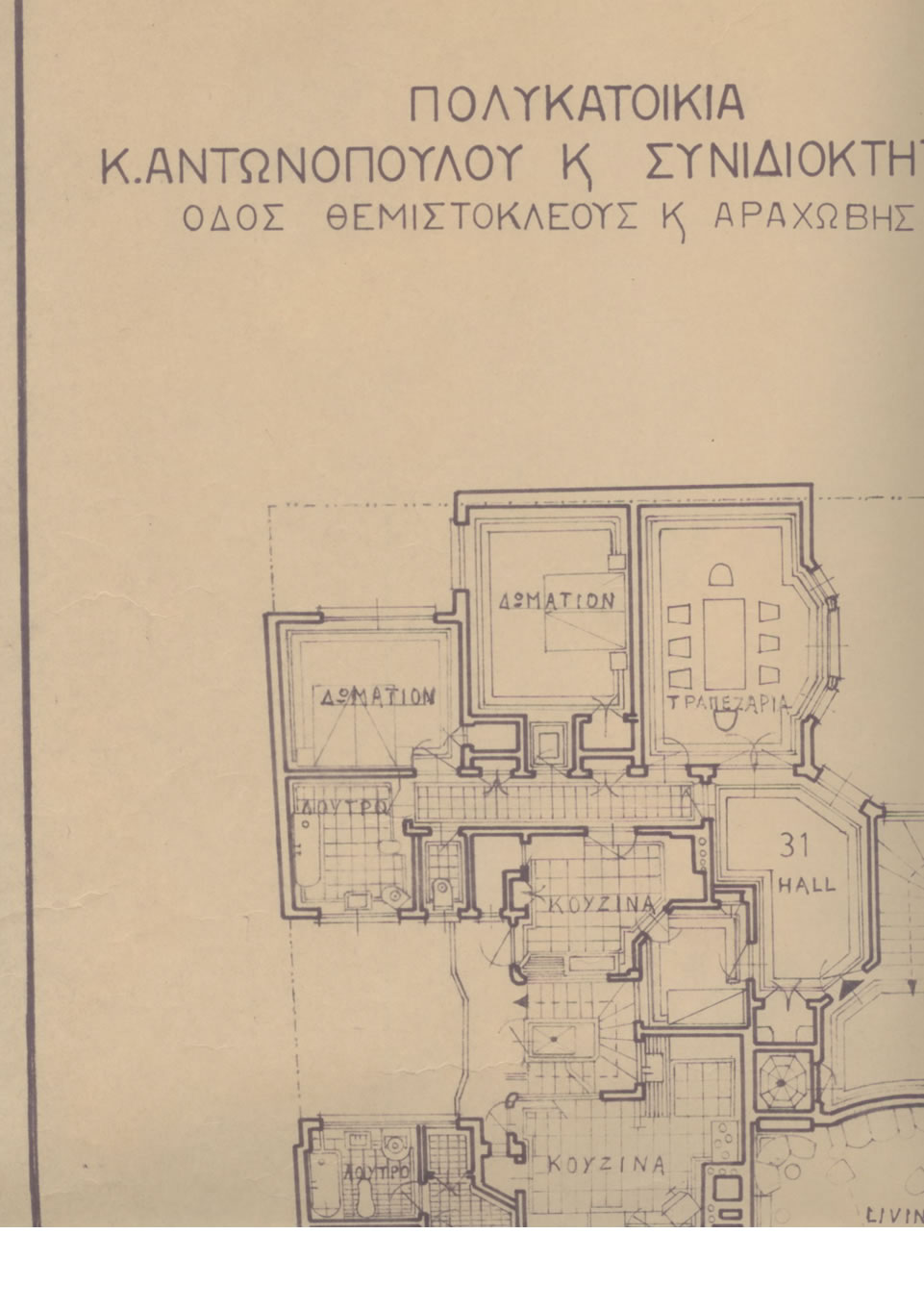 Situated on the square of the radically chic district of Exarchia, not far from the National Technical University of Athens (NTUA), it ranks among the first Athenian apartments to constitute a genuine expression of the radical principles and codes of the Modern Movement.