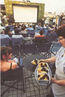 You can smoke, drink and eat in the summer open air theaters. They start at dusk and have an 11:15 pm showing too. You will enjoy outdoor cinema Greek style.