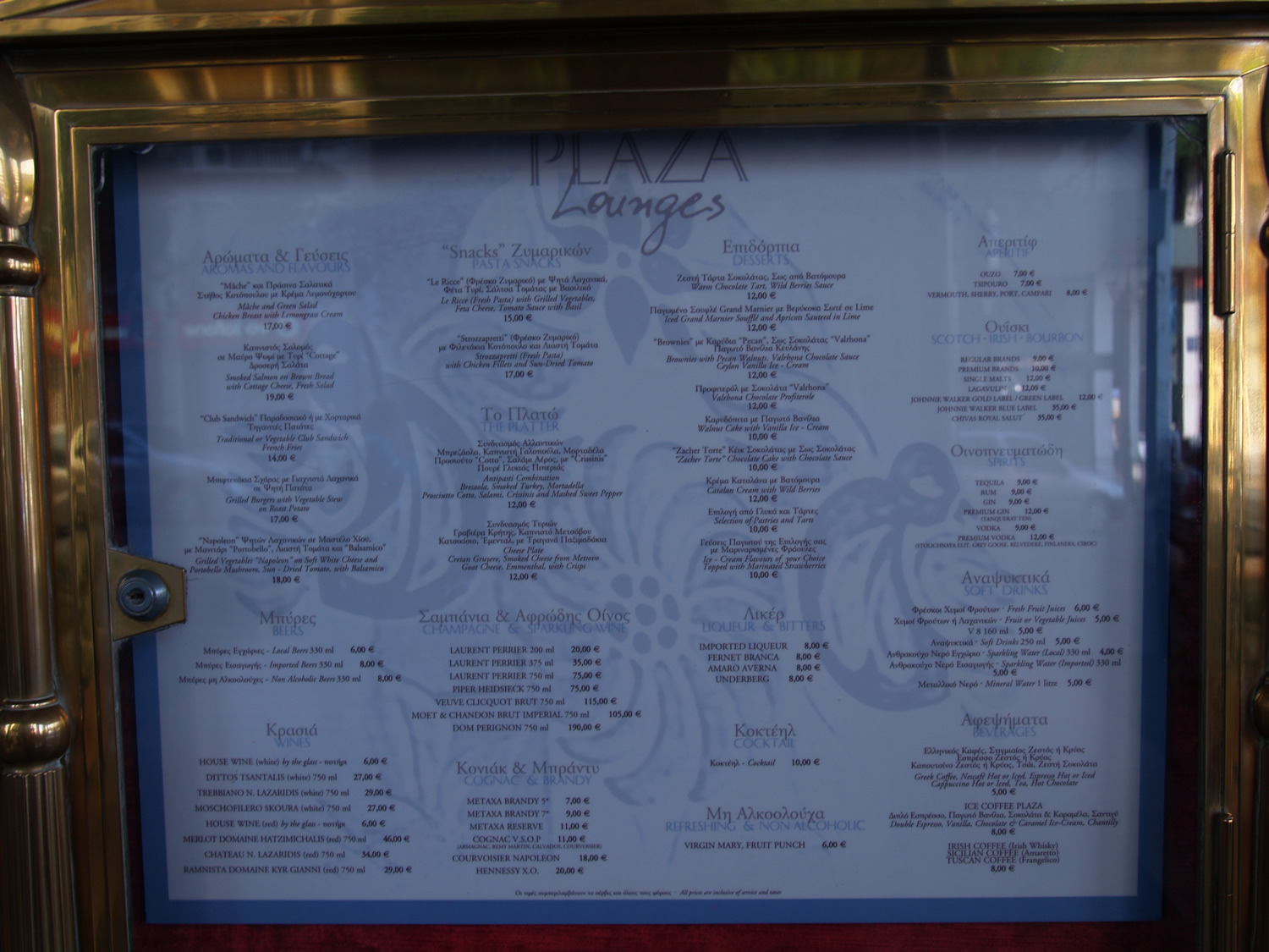 If you thought the HRC is pricey wait until you see the walk in menu of the NVC Grecotel Athens Plaza pictured on the above right, but at least, in the hotel, you get treated to a more elegant ambiance. It has a more special feel to it somehow and you know you are going first class all the way! The food is actually priced about the same as the HRC but there are other expensive items.