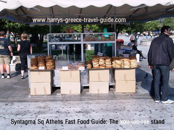 Right is the Syntagma Sq Coulouri Stand, A coo-loo-ree is a piece of 'nutrition free' white bread in a circle with
